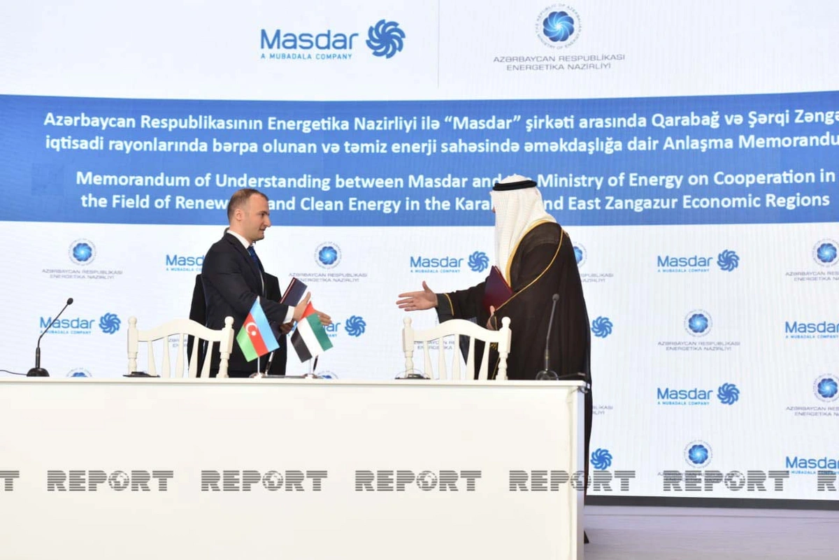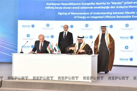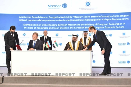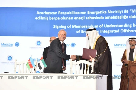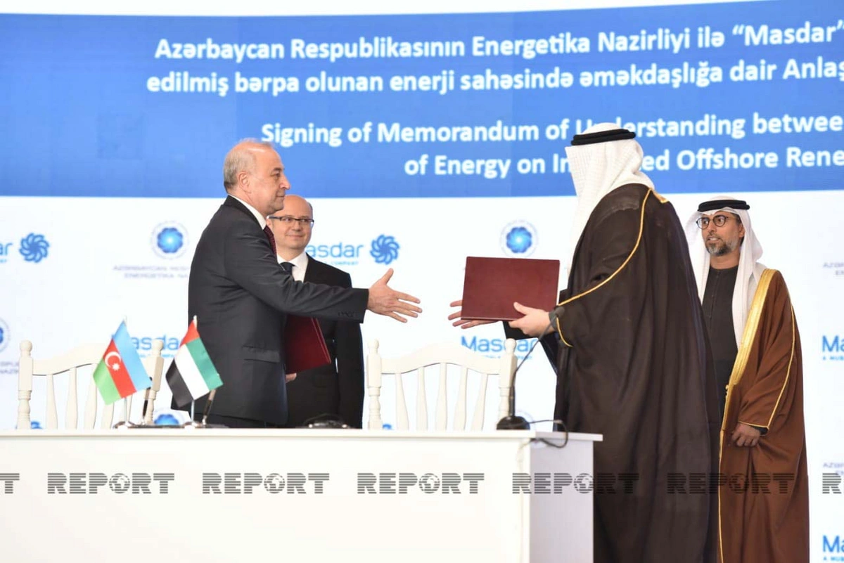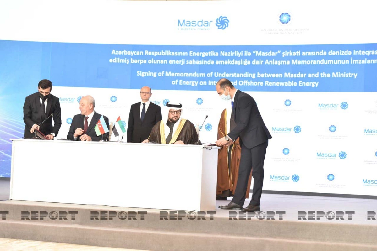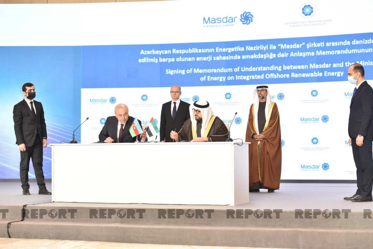 Bunlardan biri “Dənizdə inteqrasiya edilmiş bərpa olunan enerji sahəsində əməkdaşlığa dair Anlaşma Memorandumu”dur ki, onu Azərbaycanın energetika nazirinin müavini Samir Vəliyev və BƏƏ-nin “Masdar” şirkətinin İdarə Heyətinin sədri Məhəmməd Camal Əl Ramahi (Mohammad Jameel Al Ramahi) imzalayıb.