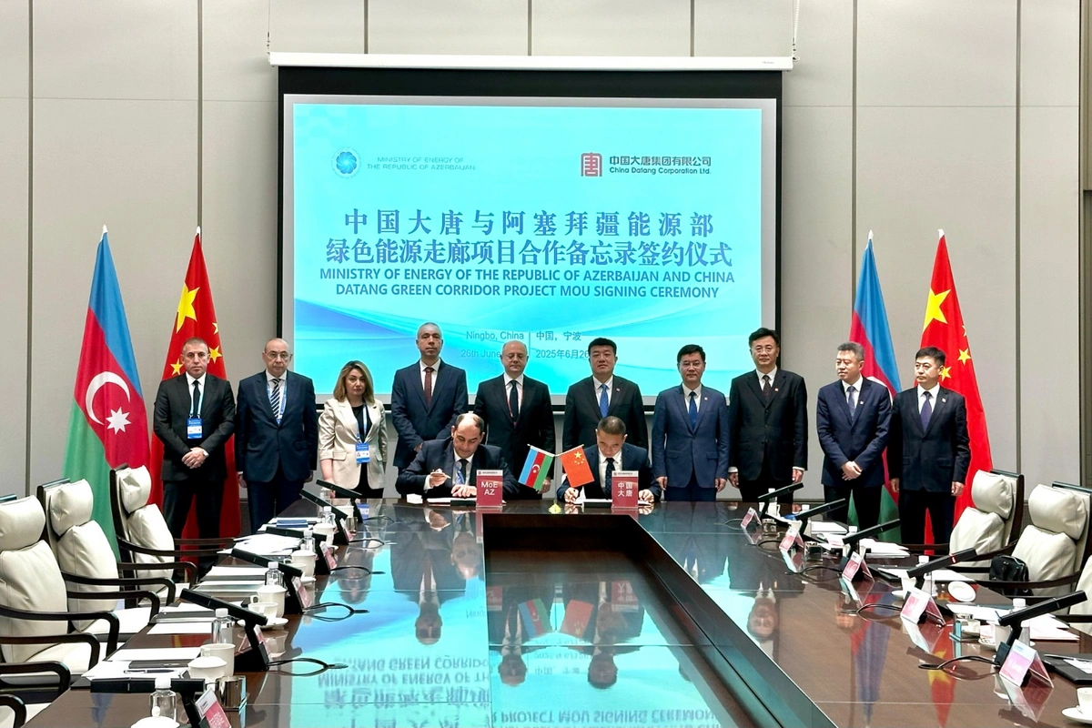 Energetika Nazirliyinin tabeliyindəki Bərpa Olunan Enerji Mənbələri Dövlət Agentliyi ilə Çinin “China Datang Overseas Investment Co. Ltd” arasında yaşıl enerji dəhlizinin inkişafı üzrə əməkdaşlıq haqqında Anlaşma Memorandumu imzalanıb.