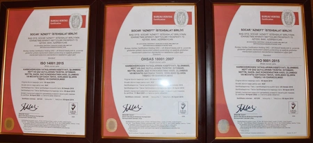 Məlumata görə, belə ki, “Buro Veritas Azeri” şirkəti tərəfindən keçirilmiş audit yoxlamalarının nəticələrinə görə, “Azneft” və Qaz Anbarlarının İstismarı İdarəsi İSO 9001:2015, İSO 14001:2015 və OHSAS 18001:2007 beynəlxalq standartları üzrə sertifikatlara layiq görülüb. Bununla bağlı, İB-nin aparatında təqdimetmə mərasimi keçirilib.