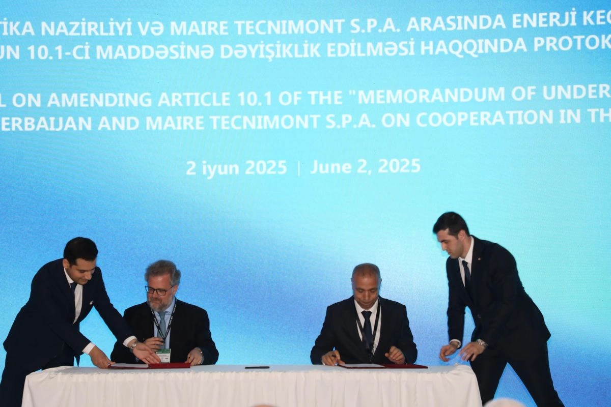 Bundan başqa, Energetika Nazirliyi və “Maire Tecnimont S.p.A”. arasında “Enerji Keçidi sahəsində əməkdaşlığa dair Anlaşma Memorandumu”nun müddətinin uzadılması məqsədilə sənədə müvafiq dəyişiklik edilməsi haqqında Protokol da imzalanıb.