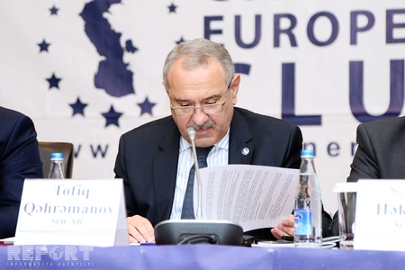 Bakı. 11 may. REPORT.AZ/ Caspian European Club-un (Caspian Business Club) bu gün Azərbaycan Respublikası Dövlət Neft Şirkətinin (SOCAR) strateji inkişaf üzrə vitse-prezidenti Tofiq Qəhrəmanovun iştirakı ilə təşkil etdiyi biznes-forumda Azərbaycanın neft-qaz strategiyasının inkişafının əsas aspektləri müzakirə olunub.