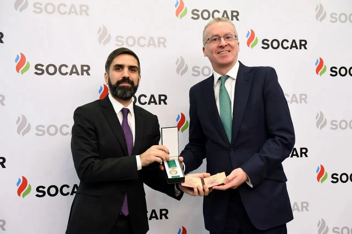 Sonda Azərbaycan Prezidenti İlham Əliyevin müvafiq Sərəncamı ilə Azərbaycan neft sənayesinin inkişafında xidmətlərinə görə təltif edilən neftçilərə orden və medallar təqdim olunub.