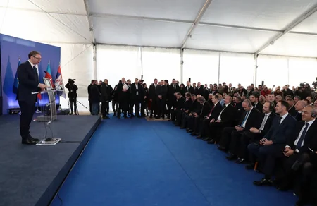 Serbiya Respublikasının Prezidenti Aleksandar Vuçiç mərasim iştirakçılarını salamladı.