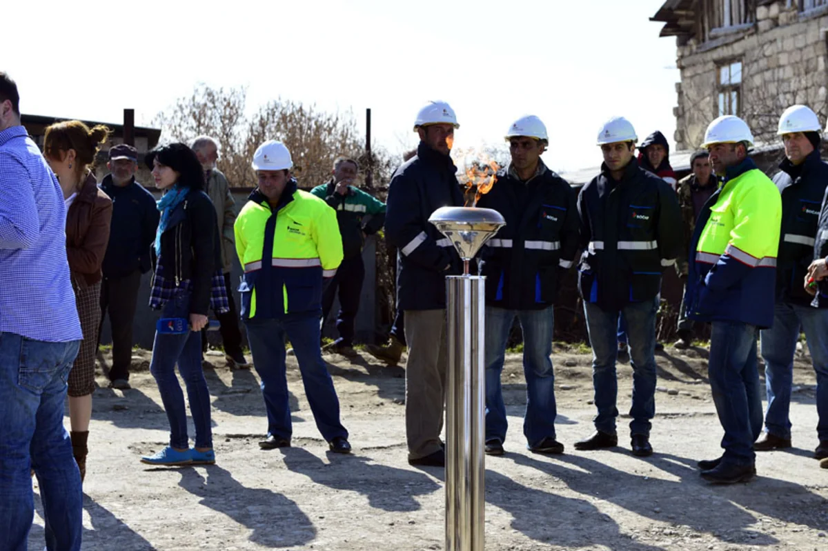 Energetika naziri və şirkət rəhbərləri Zemo Nikozi kəndinin mərkəzində rəmzi məşəli alovlandırıblar.