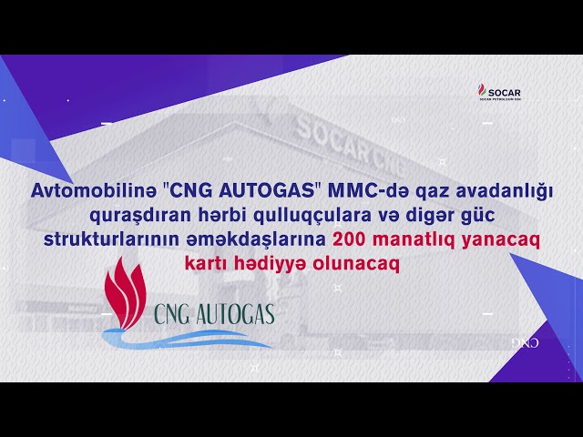“SOCAR Petroleum” QSC 26 iyun - Azərbaycan Respublikası Silahlı Qüvvələr Günü münasibətilə ölkənin hərbi qulluqçuları və eyni zamanda digər güc strukturlarının əməkdaşları üçün xüsusi hədiyyə kampaniyasına start verir. Kampaniyadan faydalanmaq istəyən güc strukturu əməkdaşları “SOCAR Petroleum” QSC-nin tərəfdaş şirkəti olan "CNG AUTOGAS" MMC-də sıxılmış təbii qaz (CNG) avadanlığı quraşdıran zaman 200 manat hədiyyə yanacaq kartı əldə edirlər.