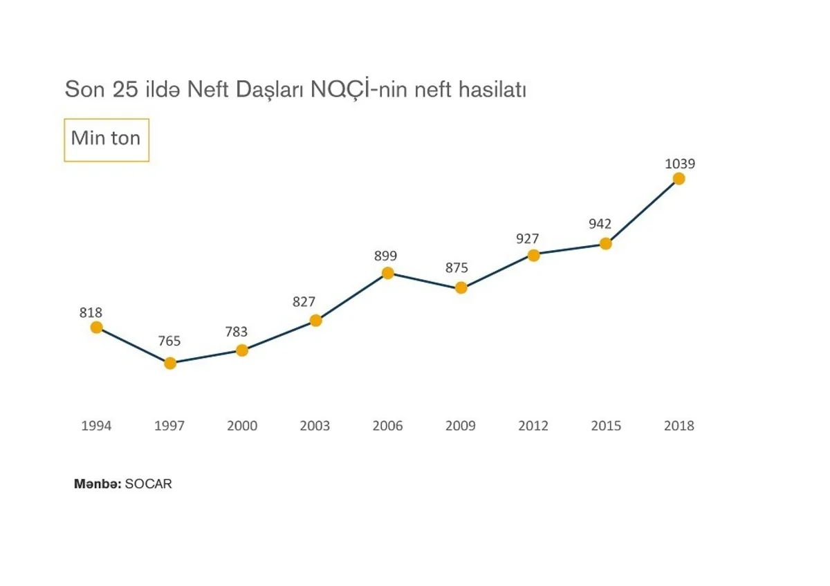 İlkin dövrdə burada istismardan çıxarılmış yeddi gəmi batırılaraq qazma va yaşayış üçün şərait yaradılmış, daha sonra “Yeddi gəmi adası” kimi məşhurlaşmış bu məntəqə açıq dənizdə süni adaya çevrilmişdir. 1951-ci ildə Neft Daşlarından ilk məhsul neft tankeri ilə sahilə göndərilmişdir. İstismar dövründə Neft Daşları NQÇİ ölkəmizin ümumi neft hasilatının 13 faizini birbaşa təmin etmişdir. Neft Daşlarının kəşfi Azərbaycanın neft sənayesində bir dönüş nöqtəsi yaratmış və ölkəmizin ikinci neft bumuna yol açmışdır. Hazırda Azərbaycan neftinin böyük hissəsi məhz dənizdə çıxarılır. Neft Daşları həm də SOCAR-ın dənizdəki yataqlarını bir-biri ilə calaşdıran və məhsulun sahilə birbaşa ötürülməsinə xidmət edən əsas kommunikasiya düyünüdür. SOCAR üzrə ümumi çıxarılan xam neft və təbii qazın 70 faizə yaxın hissəsi sahilə məhz Neft Daşlarından ötürülür.