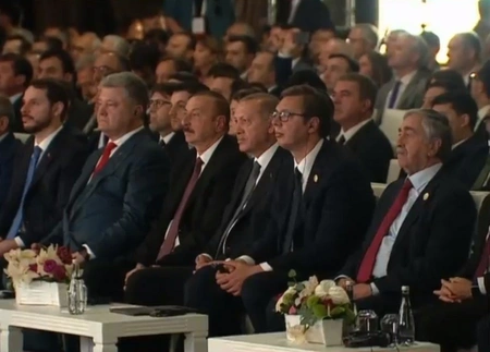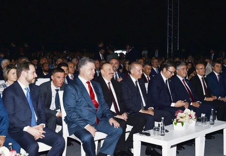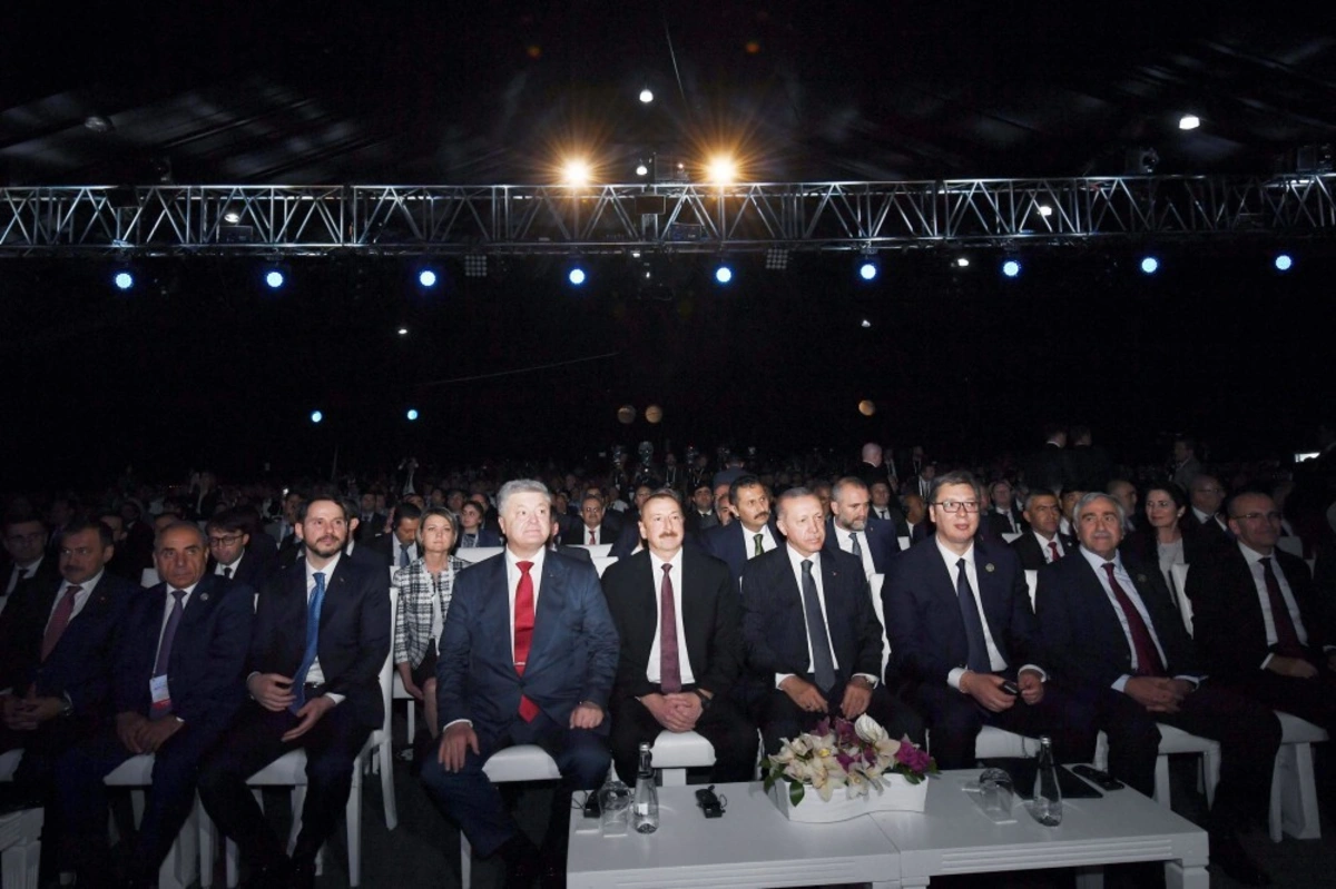 “Report” xəbər verir ki, mərasimdə Azərbaycan Prezidenti İlham Əliyev, Türkiyə Prezidenti Rəcəb Tayyib Ərdoğan, Ukrayna Prezidenti Petro Poroşenko, Serbiya Prezidenti Aleksandr Vuçiç, Şimali Kipr Türk Cümhuriyyətinin Prezidenti Mustafa Akıncı, rəsmi şəxslər, şirkətlərin rəhbərləri iştirak ediblər.