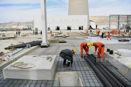Mingəçevirdəki “Azərbaycan” İstilik Elektrik Stansiyasının ərazisində inşa edilən 1 280 meqavatlıq yeni elektrik stansiyasının tikintisi sürətlə davam etdirilir.