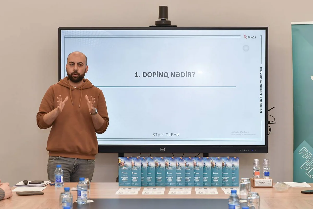 Təqdimat şəklində keçirilən seminarda antidopinq qayda pozuntuları, dopinq təhlükələri, dopinq nəzarəti prosesi haqqında idmançılara ətraflı məlumat verilib.