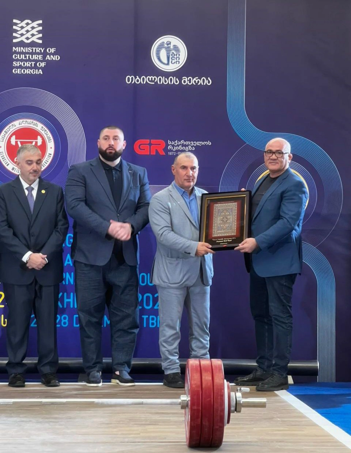 Qeyd edək ki, “Kakhi Cup 2024” beynəlxalq turniri çərçivəsində qonşu ölkəyə səfər etmiş Azərbaycan Ağırlıqqaldırma Federasiyasının vitse-prezidenti Firdovsi Umudov Gürcüstan Ağırlıqqaldırma Federasiyasının prezidenti, 3 qat Olimpiya çempionu Kaxi Kaxiaşviliyə xatirə hədiyyəsi təqdim edib.
