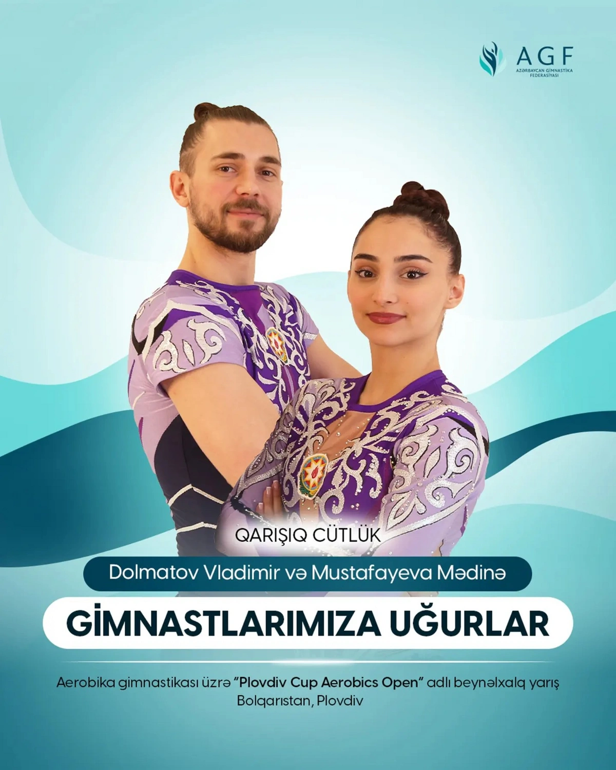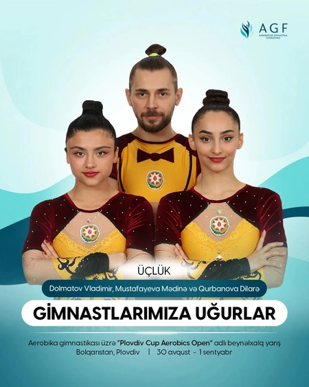 "Report" xəbər verir ki, məşqçi Mariyan Kolevin rəhbərliyi altında aerobika gimnastikası üzrə böyüklərdən ibarət komandanın heyətində Mədinə Mustafayeva və Vladimir Dolmatov qarışıq cütlüklər arasında mübarizə aparacaqlar.