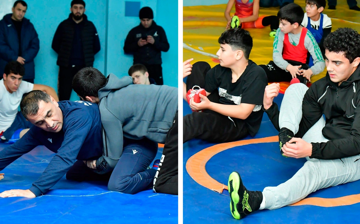 Tədbirin praktiki hissəsində N.Əlicanov sərbəst güləşdə ən çox istifadə edilən fəndlərin dəqiq icrasını nümayiş etdirib. N.Əhmədov isə yunan-Roma güləşində parterdə həyata keçirilən fəndləri və həmçinin, bu fəndlərdən müdafiə üsullarını göstərib.