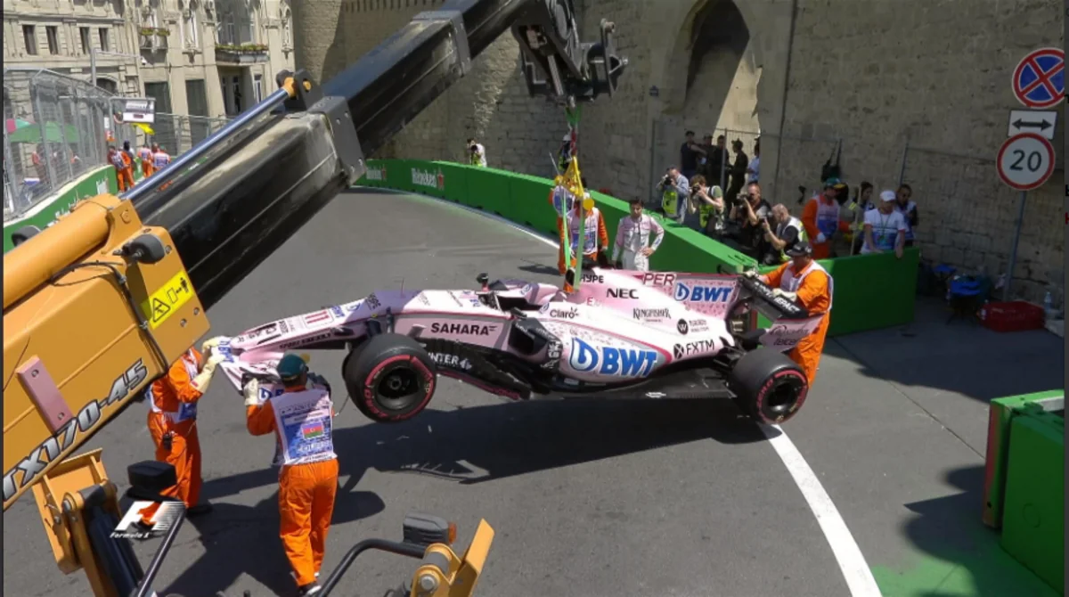 “Report”un məlumatına görə, "Force İndia"nın pilotu Serxio Peresin bolidi səkkizinci döngədə - Qız Qalasının yaxınlığında səddə çırpılıb və yarasız hala düşüb. Zərbənin gücündən bolidin sağ arxa təkəri qopub. Pilot bolidi tərk edikdən sonra marşallar ərazidə təmizlik işi aparıblar. Bolidin trassdan götürülməsi üçün kran gətirilib.