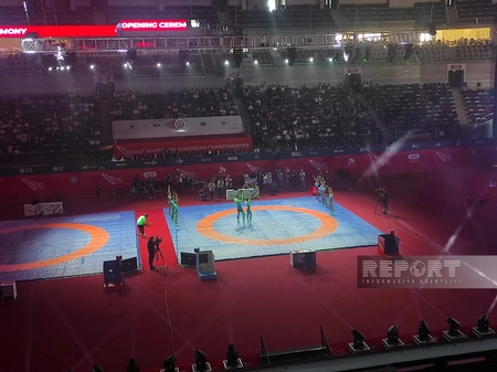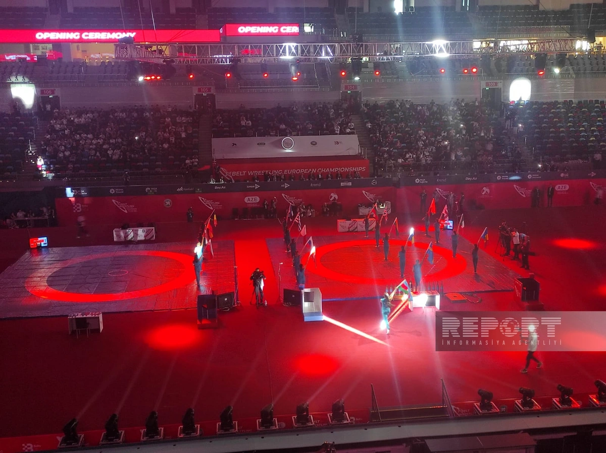 Azərbaycanın evsahibliyi etdiyi kəmər güləşi üzrə Avropa çempionatının açılış mərasimi keçirilib