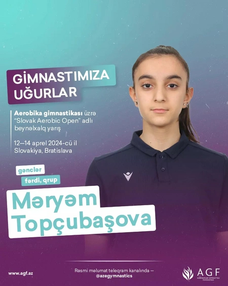 "Report" Azərbaycan Gimnastika Federasiyasının mətbuat xidmətinə istinadən xəbər verir ki, aprelin 12-14-də Slovakiyanın paytaxtı Bratislavada təşkil olunacaq yarışa 5 idmançımız qatılacaq.