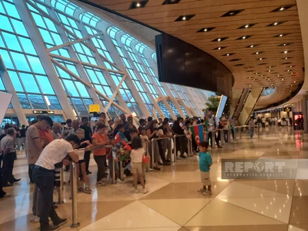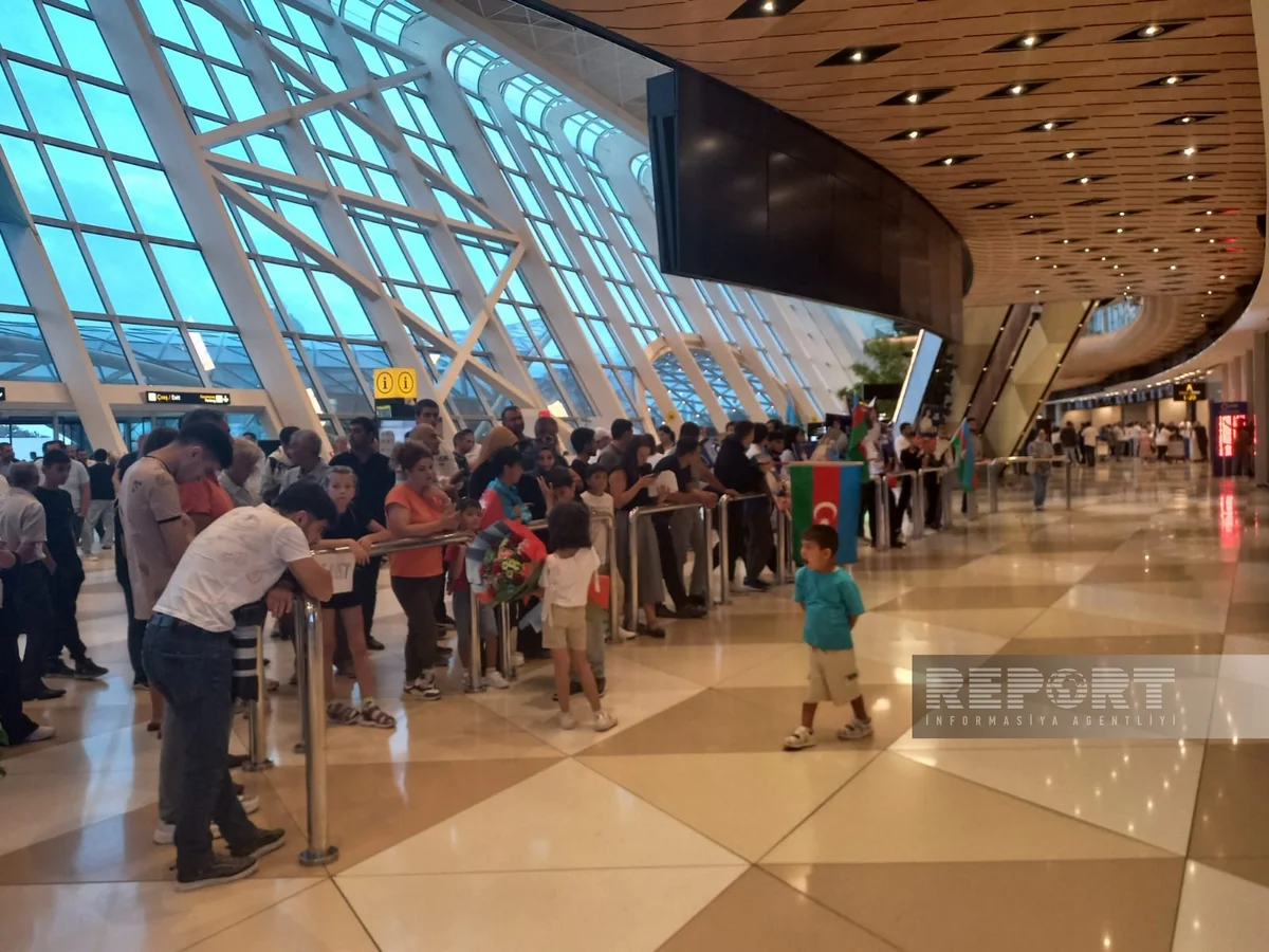 "Report"un məlumatına görə, idmançıları Heydər Əliyev Beynəlxalq Aeroportunda yaxınları, idman ictimaiyyətinin nümayəndələri qarşılayıblar.