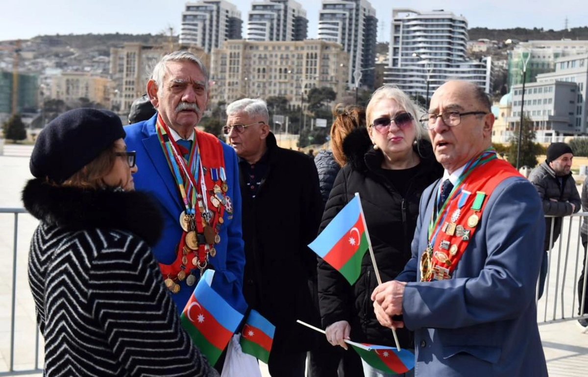 Yürüş başa çatdıqdan sonra təntənəli mərasim keçirilib. Əvvəlcə Dövlət Himnimiz səsləndirilib və şəhidlərimizin əziz xatirəsi bir dəqiqəlik sükutla yad edilib.