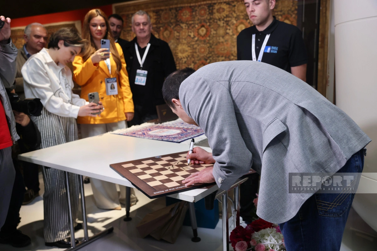 Əvvəlcə yarışla bağlı videoçarx təqdim olunub. Ardınca yarış iştirakçıları şahmat taxtasına öz imzalarını atıblar.