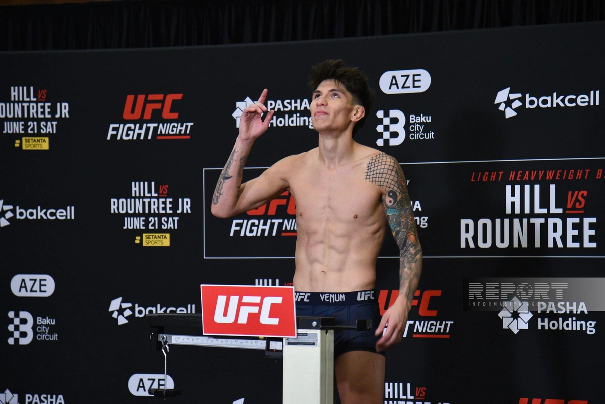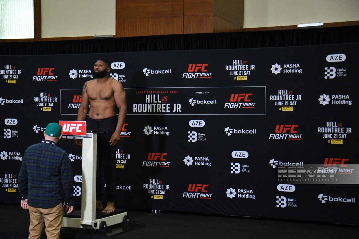 Mütləq Döyüş Çempionatının (UFC) Bakıda təşkil olunacaq turnirindən əvvəl idmançıların rəsmi çəkiölçmə mərasimi keçirilib.