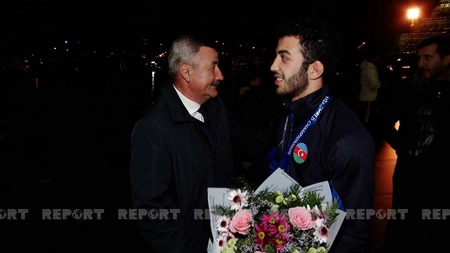 "Report"un məlumatına görə, komandanı Heydər Əliyev beynəlxalq aeroportunda Azərbaycan Güləş Federasiyasının vitse prezidenti Elçin Cəfərov, dünya çempionu və olimpiya mükafatçısı Rafiq Hüseynov, idman ictimaiyyətinin digər nümayəndələri, güləşçilərin yaxınları və jurnalistlər qarşılayıb.
