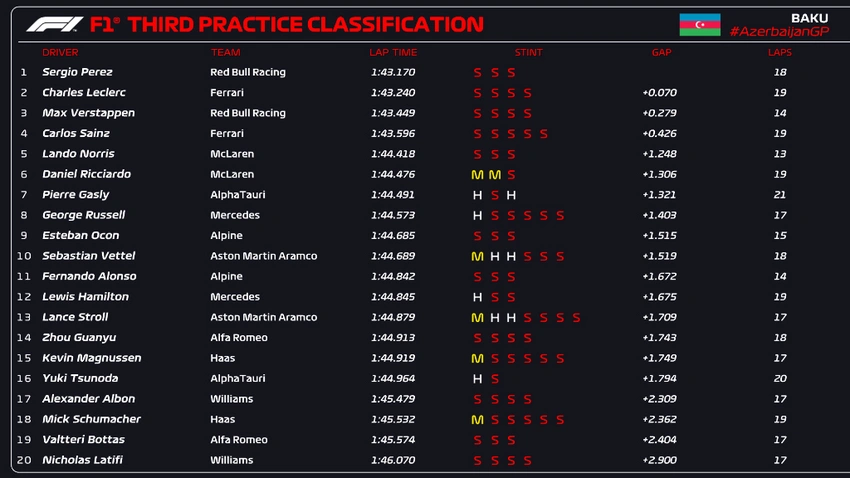 Bakıda keçirilən "Formula 1" üzrə Azərbaycan Qran-prisində üçüncü sərbəst yürüş başa çatıb.