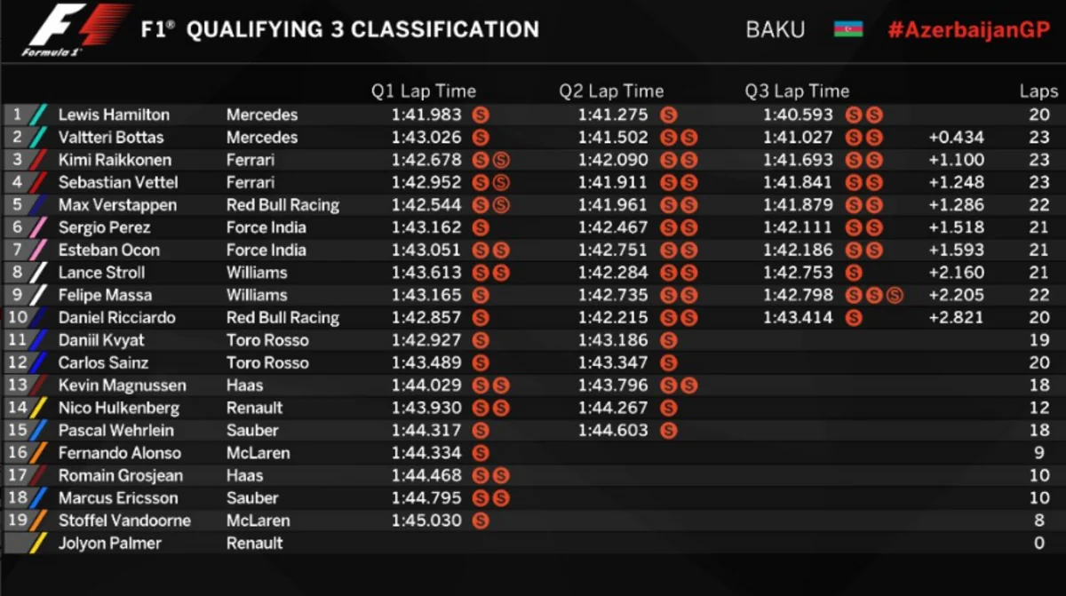 Bakı. 24 iyun. REPORT.AZ/ "Formula-1" üzrə Azərbaycan Qran-prisinin sıralama turu keçirilib.