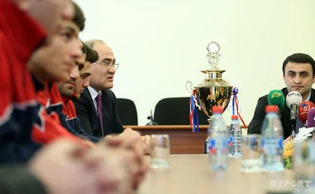 Gənclər və İdman Nazirliyində Dünya Kubokundan qayıdan Azərbaycan güləşçiləri ilə görüş keçirilib