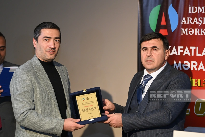 Daha sonra E.Məmmədov əvvəlcə "Report" informasiya agentliyinin baş redaktoru Murad Əliyevi, ardınca isə "İl Azero"nun nümayəndəsi Elvin Abulovu səhnəyə dəvət edərək, onlara "Etibarlı tərəfdaş" plaketini təqdim edib. Səhnədə həm "Report", həm də "İl Azero" loqoları nümayiş etdirilib.