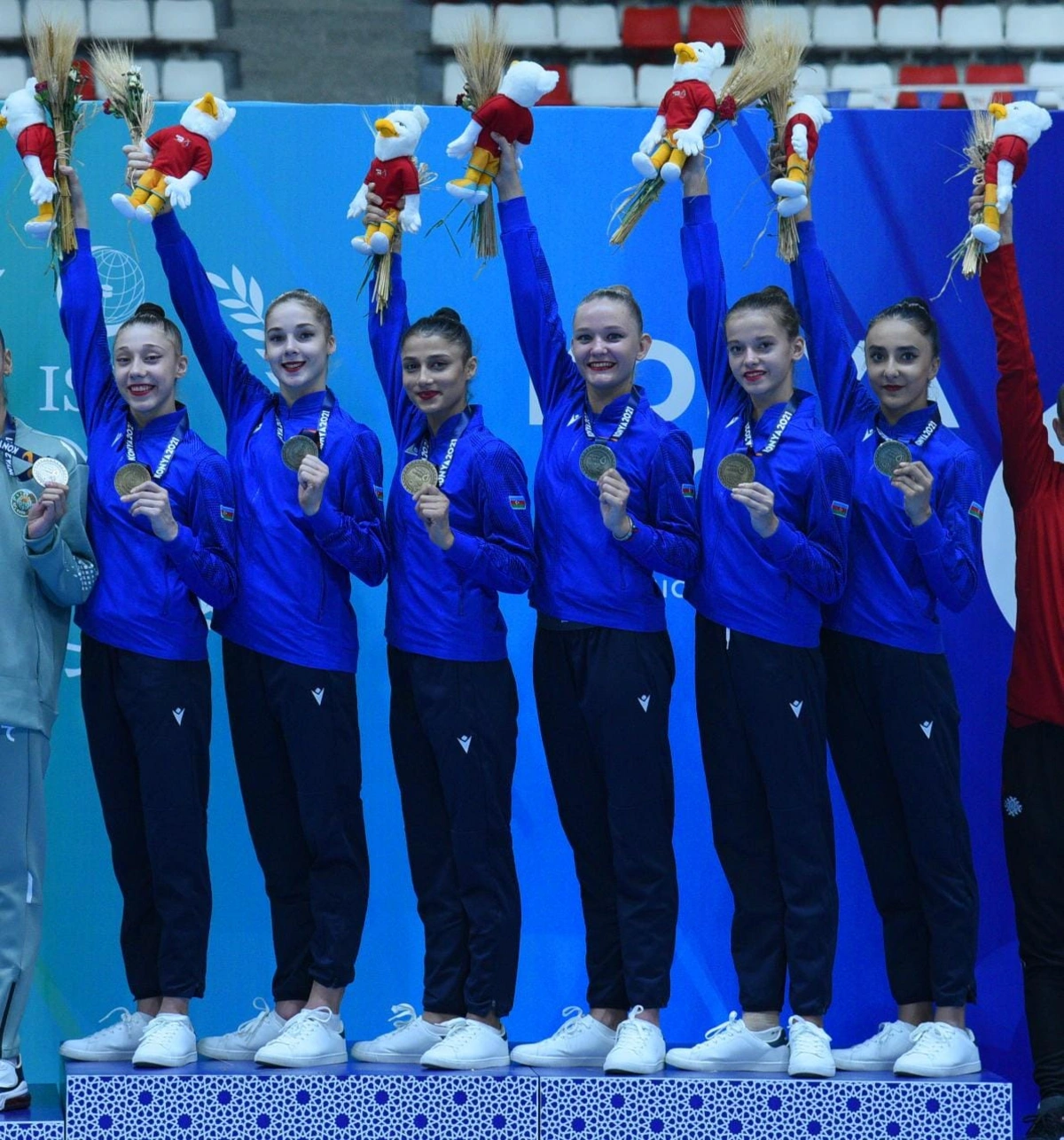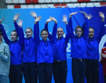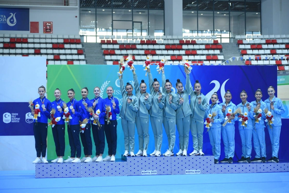 "Report"un Konyaya ezam olunmuş əməkdaşı xəbər verir ki, Zeynəb Hümmətova, Kamilla Əliyeva, Darya Sorokina, Ləman Əlimuradova, Yelizaveta Luzan və Güllü Ağalarzadədən ibarət qrup komandası üç lent və iki topla hərəkətlərdə qızıl, beş halqa ilə hərəkətlərdə isə gümüş medal əldə ediblər.