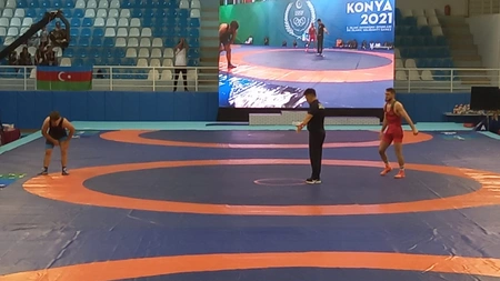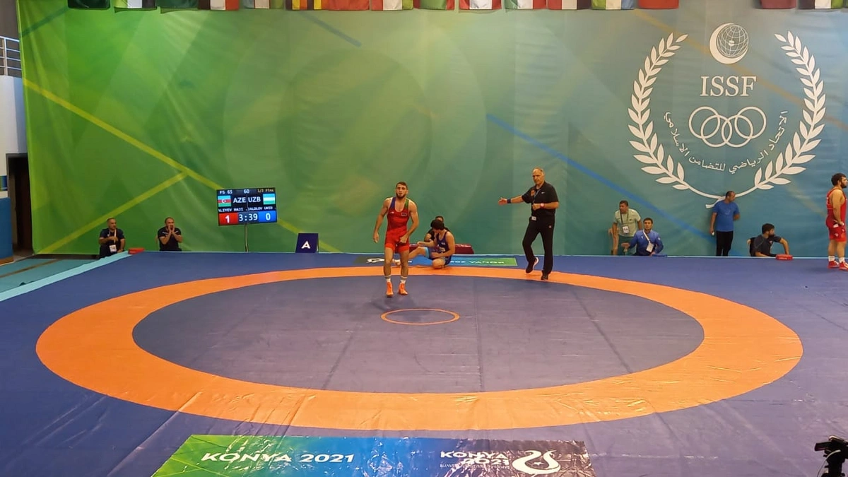 "Report"un Konyaya ezam olunmuş əməkdaşı xəbər verir ki, 65 kq-da yer alan idmançı həlledici qarşılaşmada Albaniya təmsilçisi Zəlimxan Abakarovla üz-üzə gəlib.