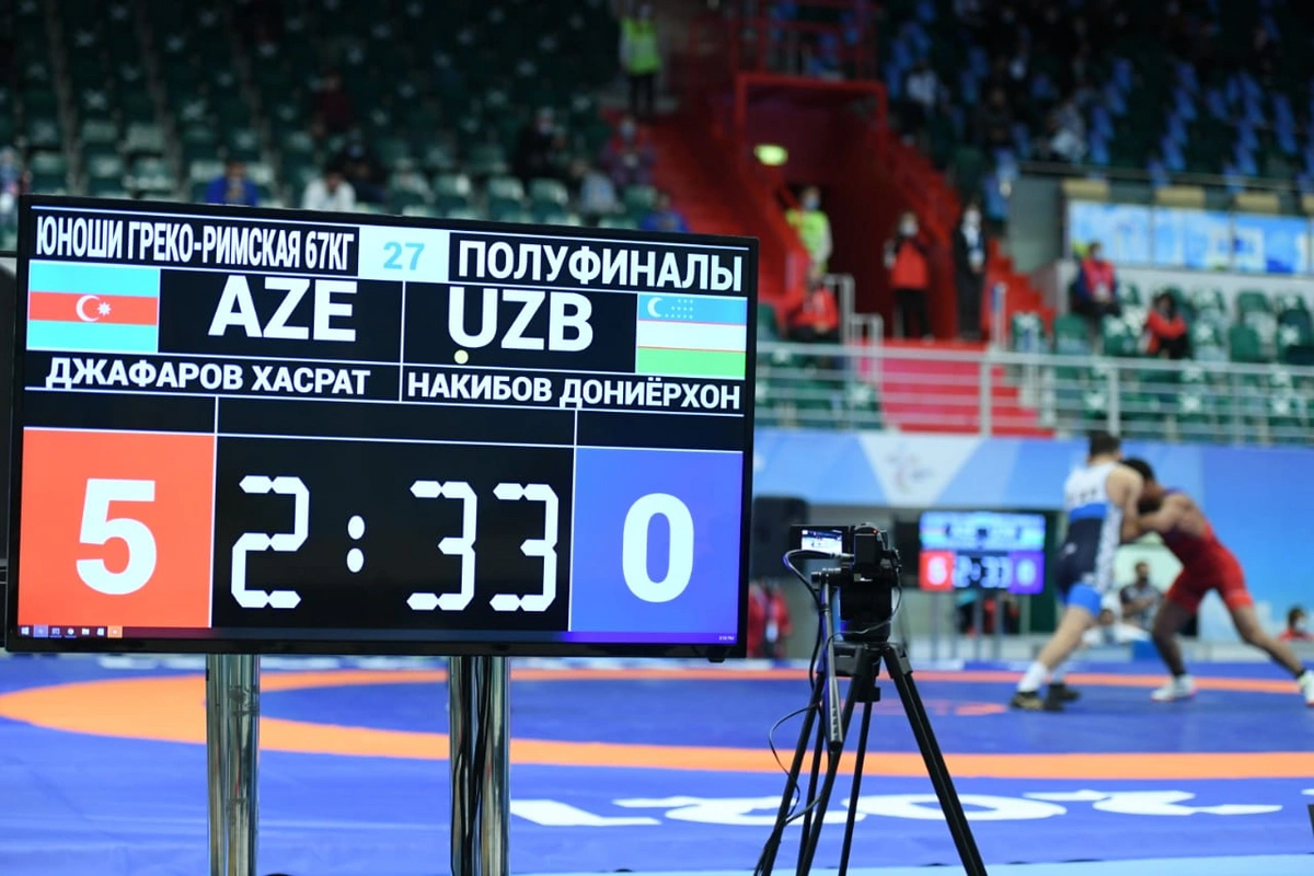 60 kq çəki dərəcəsində mübarizə aparan Nihat Məmmədli, 77-kq-da yarışan Elcan Məmmədov və 87 kq-dakı Laçın Əliyev yarımfinalda uduzub. Onlar bürünc medal uğrunda görüşlərə qatılacaq.