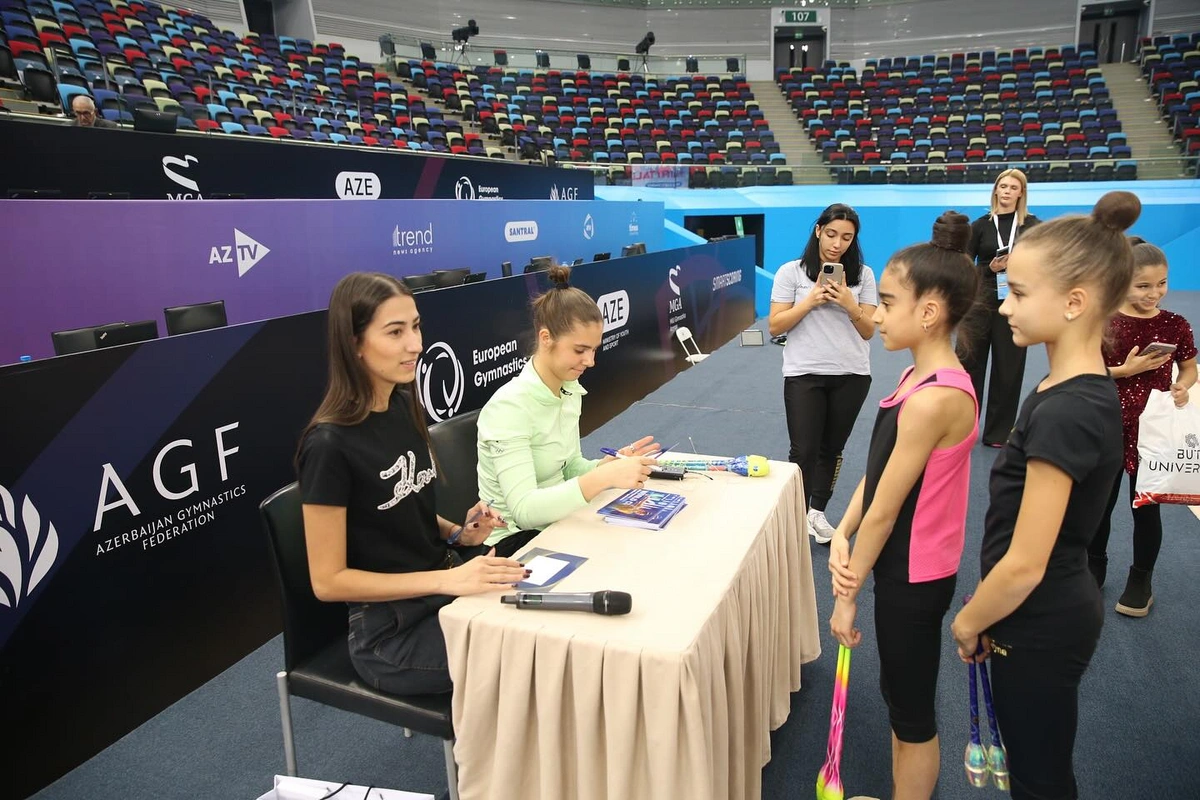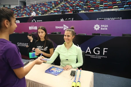 Macarıstandan olan idmançı sonda gimnastlara avtoqraf verib.