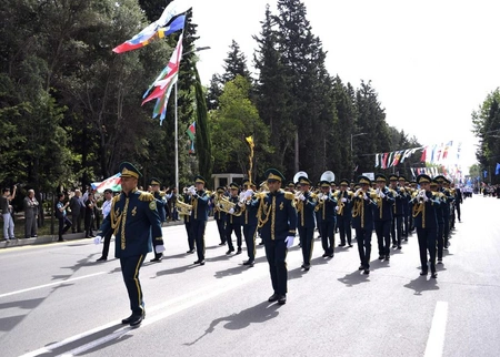 "Report"un məlumatına görə, saat 10:30-da start götürən paradda Gürcüstan, Moldova, Türkiyə, Özbəkistan və Azərbaycan idmançıları Mingəçevir şəhərində yürüş ediblər.