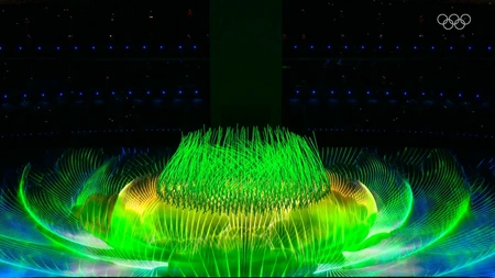 Paradın ardından nəhəng virtual qar dənəciyi arenanın ətrafında qələbə dövrəsi vurub və yerin kosmosdan görünüşü əks olunub. Beynəlxalq Olimpiya Komitəsinin prezidenti Tomas Baxın çin dilində müraciəti tribunadakı azarkeşlərin alqışı ilə qarşılanıb. Çin Xalq Respublikasının Sədri Si Cinpin olimpiadanı açıq elan edib.