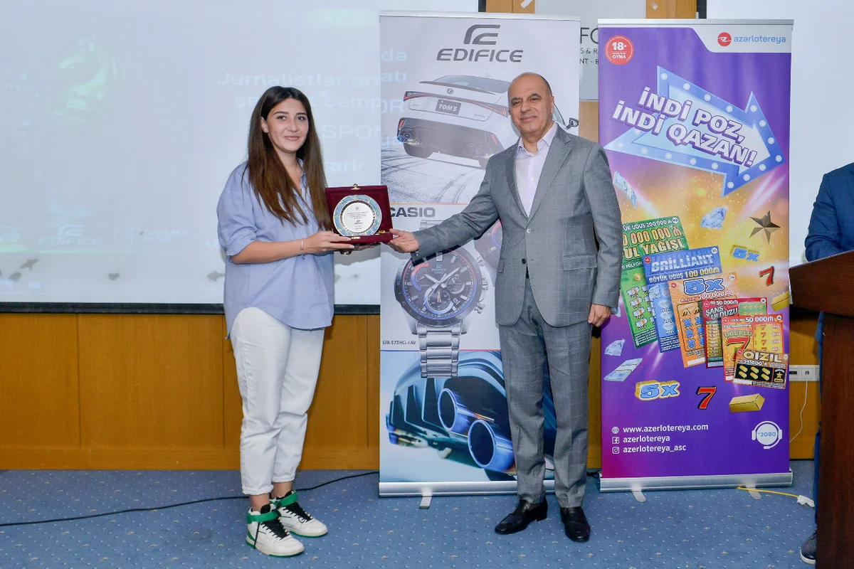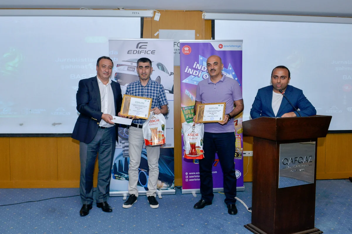 Media turnirinin qalibi “Goallisimo” komandasının üzvləri Aysel Adıgözəlli və Səddam Laçına diplomlar və 500 manat pul mükafatı təqdim olunub.
