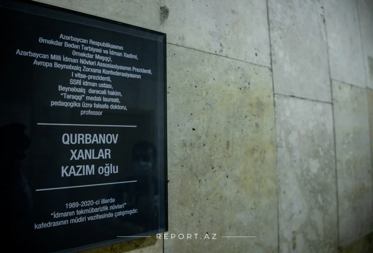 Güləş zalında həmçinin uzun illər akademiyada fəaliyyət göstərən "İdmanın təkmübarizlik növləri" kafedrasının müdiri professor Xanlar Qurbanovun həyat və fəaliyyətini əks etdirən guşə yaradılıb, xatirə lövhəsi asılıb.