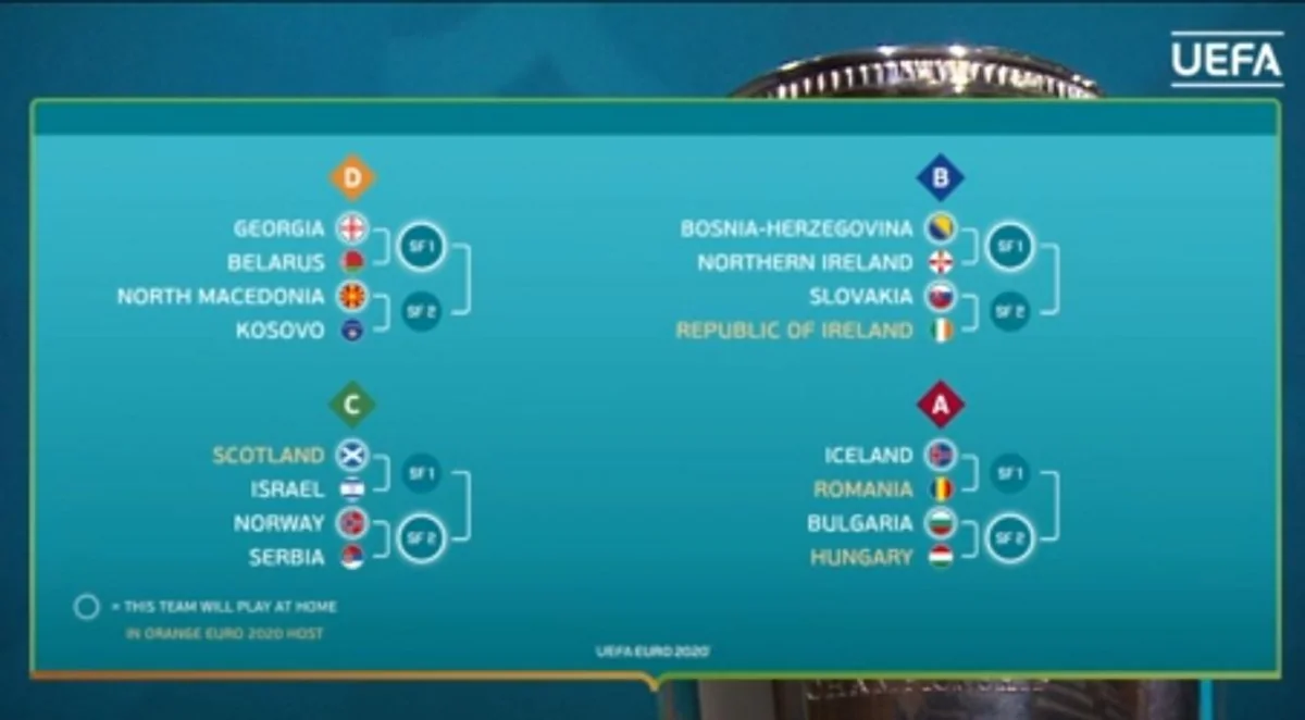 B yolunda yarımfinallarda Bosniya və Herseqovinanın Şimali İrlandiya ilə, Slovakiyanın isə İrlandiya ilə qarşılaşacağı öncədən bilinirdi. Həmçinin Azərbaycan millisinin yer aldığı D yolunda 3-cü qrupun qalibi olan Kosovonun Şimali Makedoniya ilə, Gürcüstanın isə Belarusla görüşəcəyi məlum idi. Gürcüstan - Belarus cütünün qalibi finalda ev sahibi olacaq.