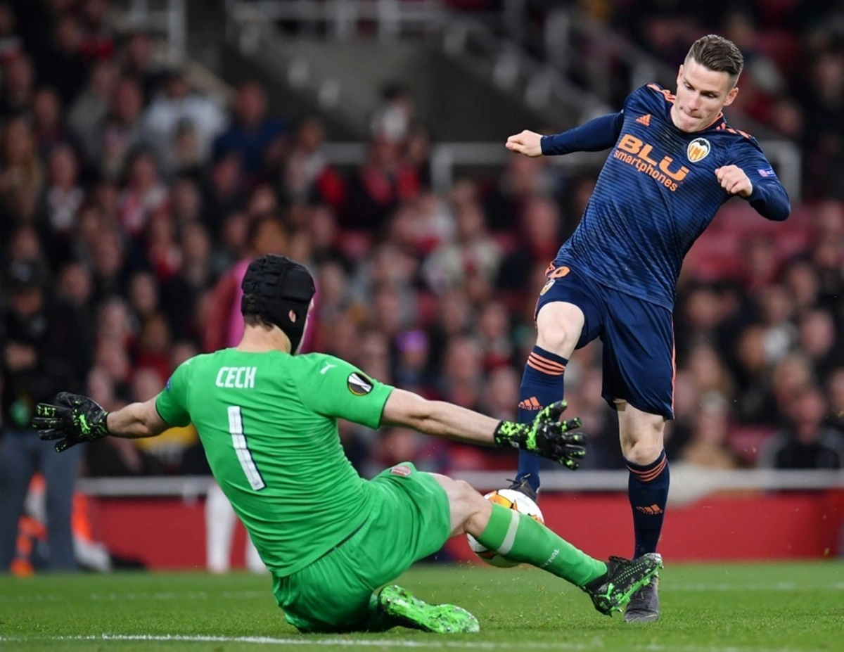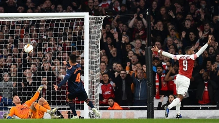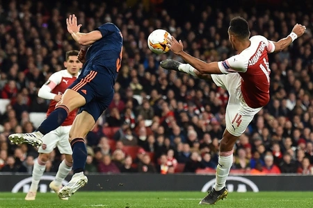 İngiltərənin digər təmsilçisi "Arsenal" isə İspaniya "Valensiya"sını qəbul edib. Bu matçda hesabı 11-ci dəqiqədə qonaq komandanın futbolçusu Muxtar Diakabi açıb. Lakin 18-ci və 26-cı dəqiqələrdə Aleksandr Lyakazett fərqlənərək, meydan sahiblərini önə çıxarıb. 90-cı dəqiqədə isə Pyer-Emerik Obameyanq oyunda son nöqtəni qoyaraq, "Arsenal"ı finala xeyli yaxınlaşdırıb.