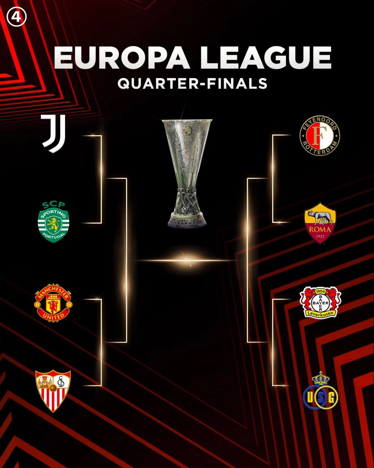 1. "Yuventus" (İtaliya) - "Sportinq" (Portuqaliya) / "Mançester Yunayted" (İngiltərə) - "Sevilya" (İspaniya)