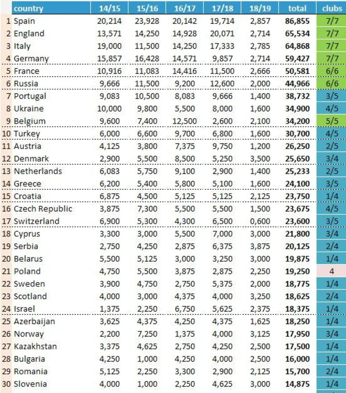 "Report"un məlumatına görə, bu, Avropa Liqasının III təsnifat mərhələsinin cavab görüşləri yekunlaşdıqdan sonra baş verib. İsrail xallarını 18,375-ə çatdıraraq, 24-cü pilləyə qalxıb. 18,250 xala malik Azərbaycan isə 1 pillə geriləyərək, 25-ci mövqedə qərarlaşıb.