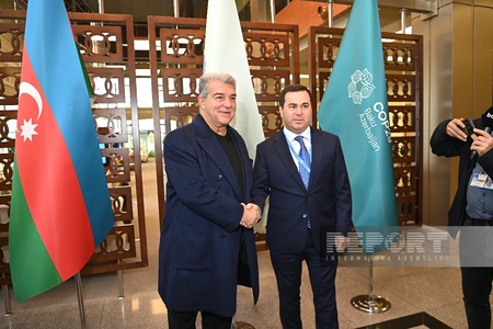 İspaniyanın "Barselona" klubunun prezidenti Xuan Laporta Bakıya gəlib.