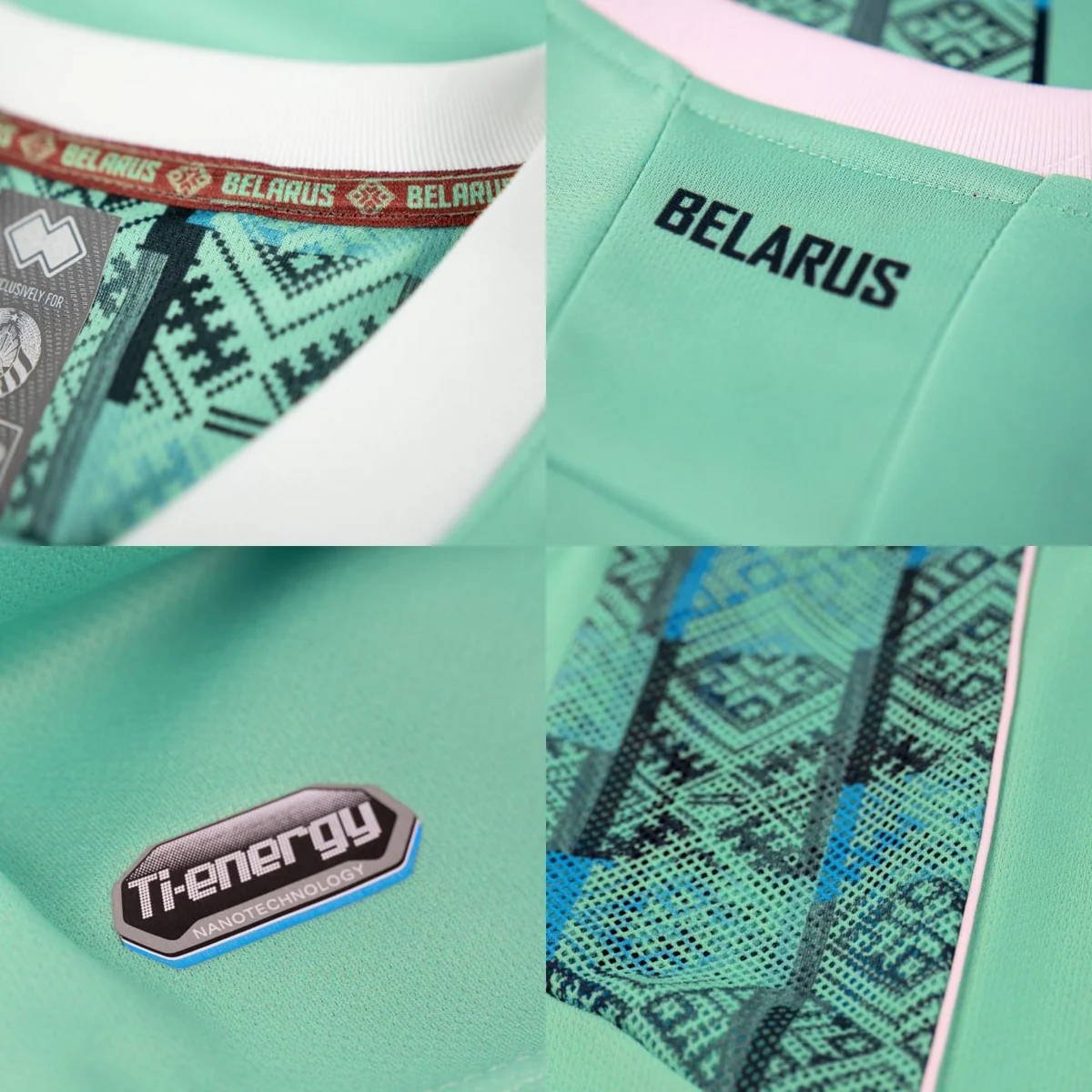 Qırmızı rəngli ev formasının ön tərəfində geniş şaquli zolaq var, onun içərisində Belarusa xas yaşıl ornament təsvir olunub. Arxa hissədə isə ölkənin adı yazılıb. Səfər forması əsasən yaşıl rəngdədir.