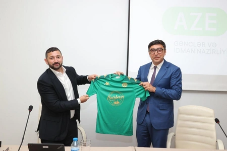 Sonda "Birbaşa Bakı" komandasının forması nazir Fərid Qayıbova təqdim olunub və xatirə şəkli çəkdirilib.