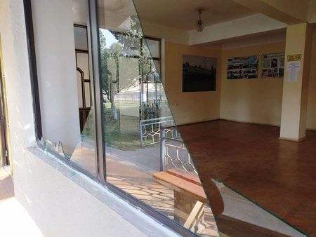 "Report"un klubun rəsmi saytına istinadən məlumatına görə, gecə saatlarında Gəncədə dinc əhalini xaincəsinə hədəfə alan düşmənin artilleriya zərbəsi nəticəsində bir çox obyektlər kimi, yaxın ətrafda olan arenaya da zərər dəyib. Yarıməsrdən çox tarixi olan stadionda hazırda vəziyyət şəkillərdən göründüyü kimidir. Məlum hadisədən sonra stadionun inzibati binasında qapı və pəncərələrin çərçivələri yerindən çıxıb, şüşələr qırılıb.