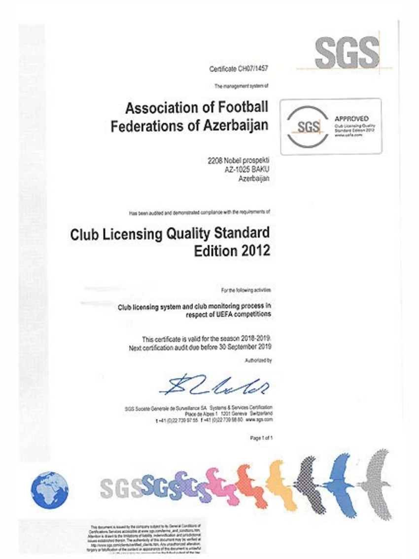 Bakı. 23 yanvar. REPORT.AZ/ İsveçrənin SGS şirkəti 2018-ci ildə AFFA-nın Lisenziyalaşdırma qrupunun fəaliyyəti ilə bağlı apardığı yoxlamanın nəticələrini açıqlayıb.