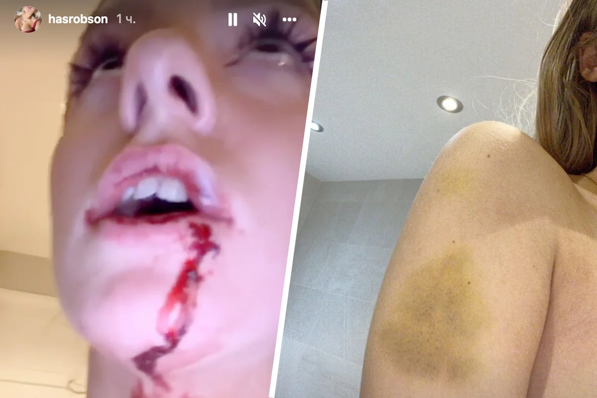 Zorakılığa məruz qaldığını iddia edən Robson üzündə, qollarında və ayaqlarında göyərmələri əks etdirən fotolar paylaşıb.