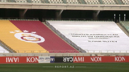 "Report"un məlumatına görə, tribunaya hər iki ölkənin və klubların bayraqları yerləşdirilib.