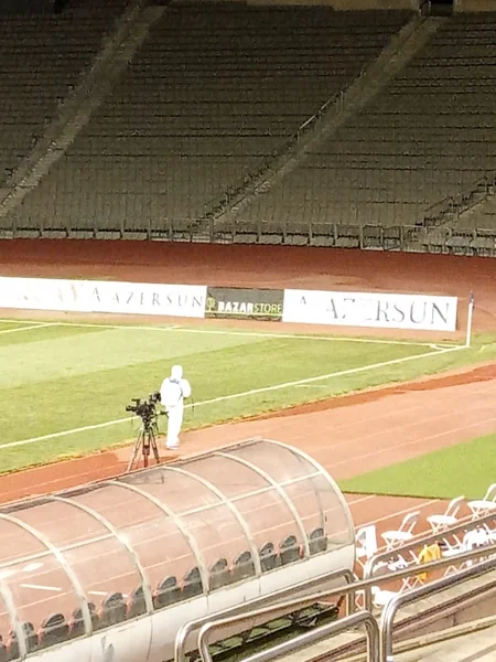 "Report"un məlumatına görə, fasilə yaranan kimi meydana xüsusi geyimdə olan iki nəfər daxil olub. Onlar topları, qapı torlarını və dirəklərini, eyni zamanda künc bayraqlarını dezinfeksiya ediblər. Dezinfeksiya işləri koronavirus pandemiyası əleyhinə görülüb.