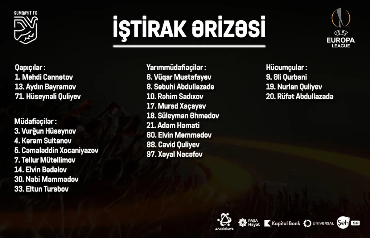 "Sumqayıt" klubu UEFA Avropa Liqasının I təsnifat mərhələsində qarşılaşacağı Şimali Makedoniya təmsilçisi "Şkendiya" ilə matç üçün iştirak ərizəsini UEFA-ya təqdim edib.