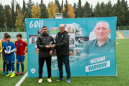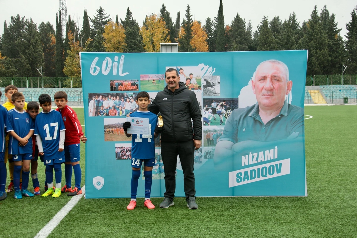 “Azəri”, “Kəpəz” və “Turan Tovuz”un bütün futbolçuları müvafiq medallarla təltif olunduqdan sonra baş mükafat – kubok yubilyar Nizami Sadıqov tərəfindən “Turan Tovuz”un müvafiq yaş qrupu üzrə komandasının kapitanına təqdim edilib.